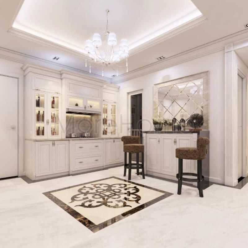 Thiết kế nội thất phòng bếp chung cư ấn tượng và sang trọng với lối thiết kế tân cổ điển nhẹ nhàng