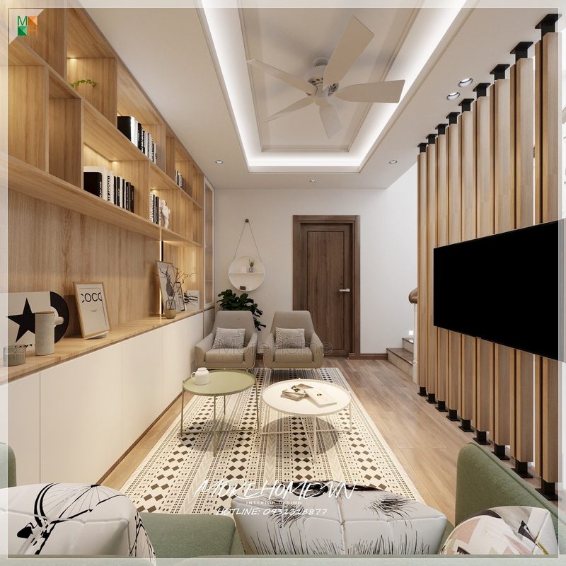 Gỗ ốp tường tạo điểm nhấn ấn tượng cho phòng khách hiện đại biệt thự