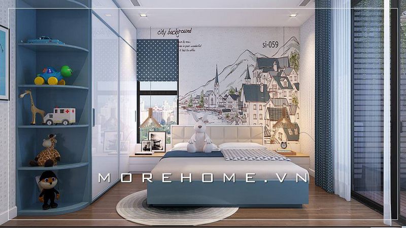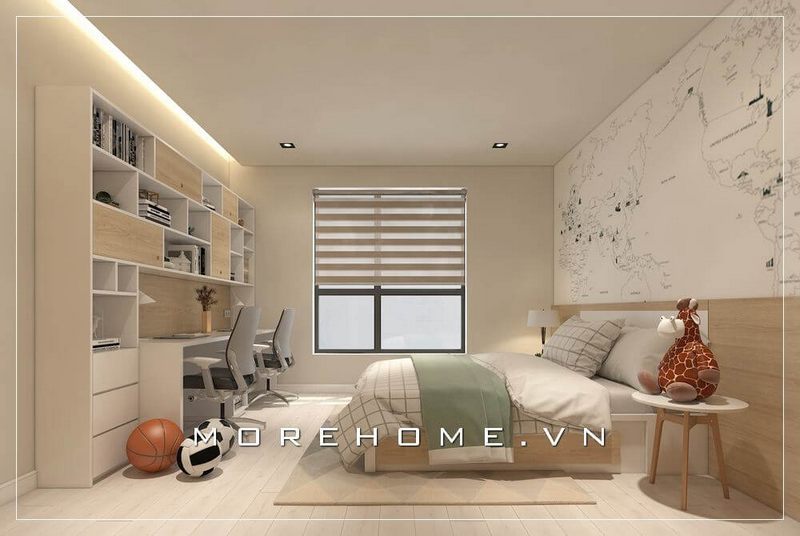 Nội thất phòng ngủ cho 2 bé trai hiện đại, sang trọng, tận dụng được ánh sáng tự nhiên giúp cho căn phòng luôn thông thoáng và năng động
