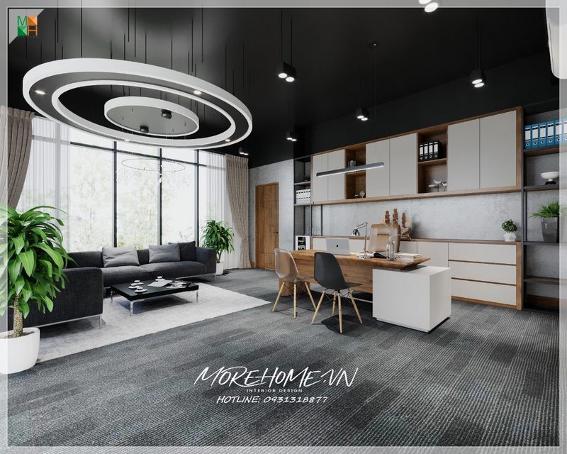 Phòng khách thiết kế hiện đại phối màu sáng và trầm tạo nên không gian hài hoà ấm cúng nhưng cũng rất sang trọng.