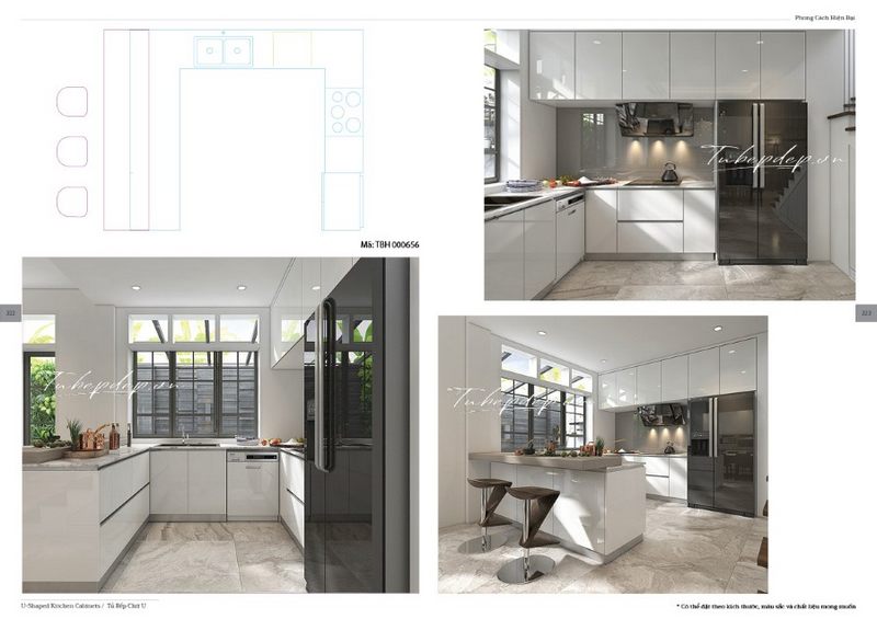 Với những phòng bếp có không gian thoải mái, không quá chật hẹp thì tủ bếp gỗ chữ U gỗ óc chóc luôn là sự lựa chọn hoàn hảo cho không gian sống đẳng cấp của gia chủ