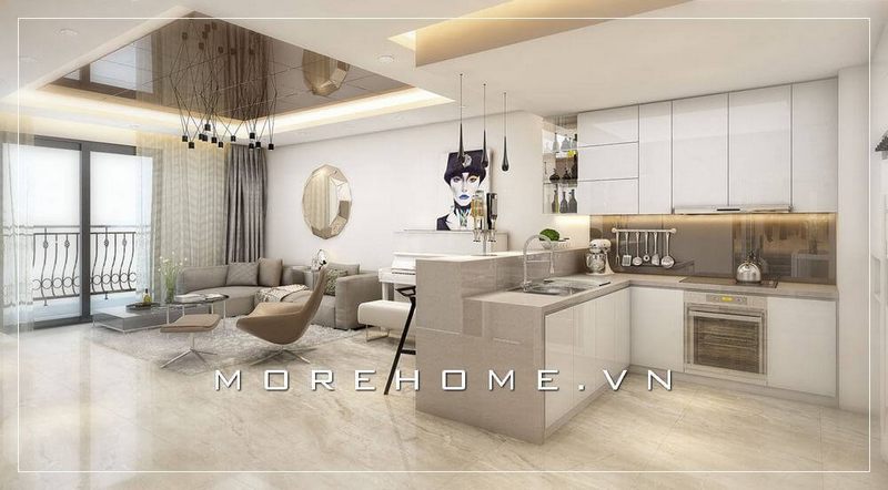Trang trí nội thất chung cư với gam màu trắng be chủ đạo góp phần tạo nên một không gian hiện đại, tinh tế và cao cấp.