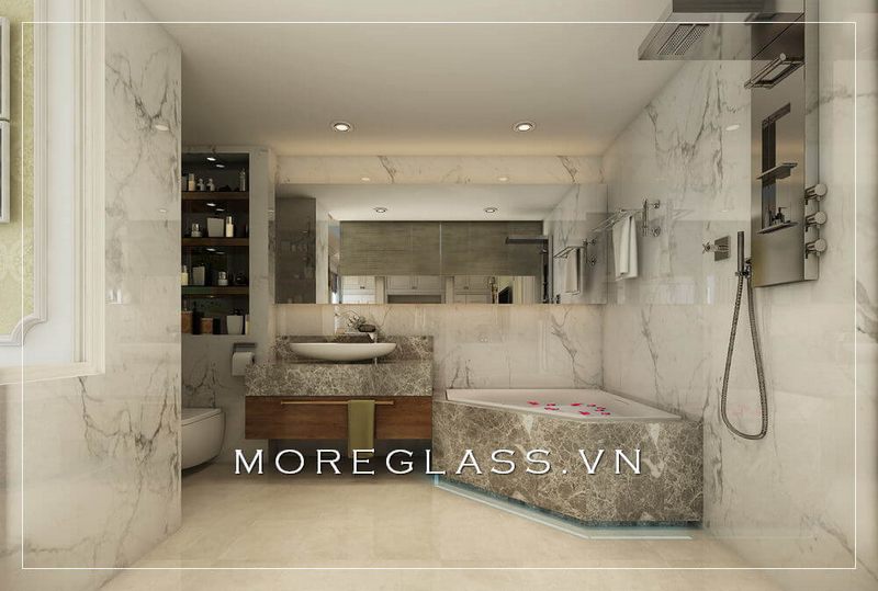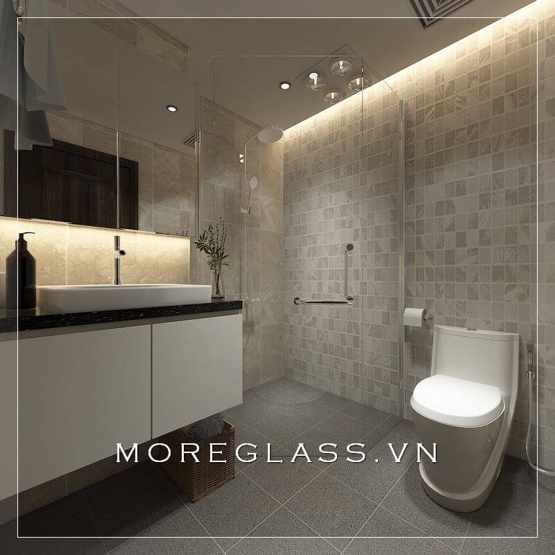 . Phòng tắm hiện đại, được trang bị với vách tắm kính cao cấp, có thiết kế tinh tế và thoải mái.