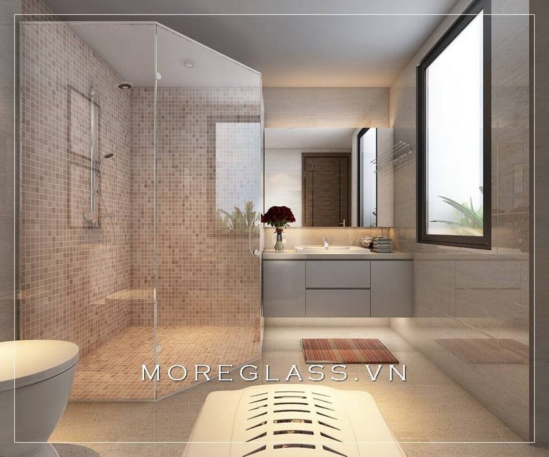 Sử dụng vách kính phòng tắm đứng hiện đại cho nhà vệ sinh biệt thự
