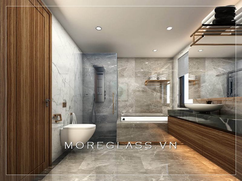 Để tăng cường sự thông thoáng và rộng rãi cho phòng tắm, hãy xem xét việc sử dụng kính cường lực để tạo cảm giác ánh sáng tự nhiên lan toả khắp không gian. Đồng thời, bạn cũng có thể sử dụng các kỹ thuật trang trí hiện đại như gương phản chiếu hoặc ánh sáng điểm để mở rộng không gian theo chiều dọc. Bạn sẽ ngạc nhiên với khả năng biến hóa của phòng tắm khi áp dụngthực hiện các ý tuởơg này!