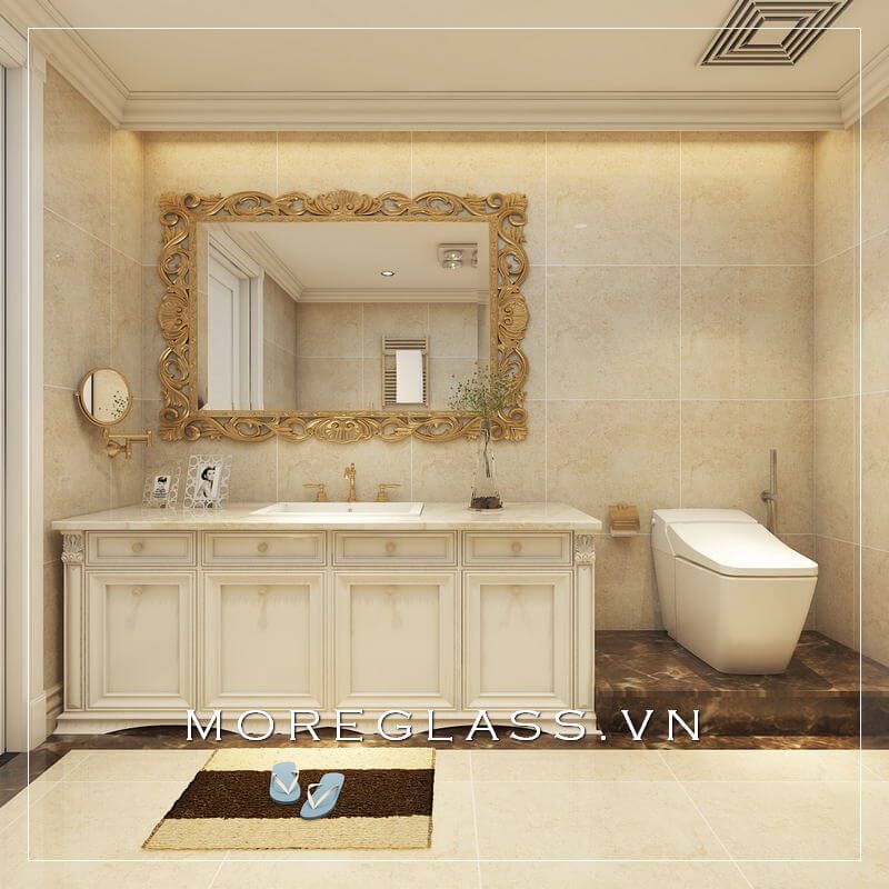 Mẫu thiết kế nhà vệ sinh biệt thự cao cấp cùng với nội thất sang trọng tông màu trắng tinh tế đã tạo ra ấn tượng mạnh mẽ trong lòng người.