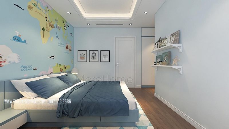 Cửa gỗ màu trắng công nghiệp làm cho không gian phòng của bé trở nên tinh tế và đẹp mắt.
