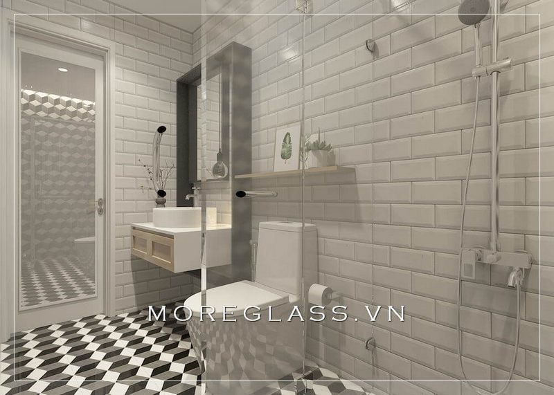 Để tận dụng được tối đa không gian trong phòng tắm nhỏ, sử dụng vách tắm kính cường lực để ngăn nước hắt ra ngoài và thiết kế nội thất phù hợp.