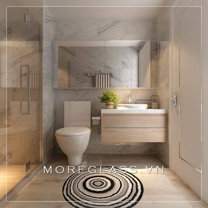 Mẫu thiết kế nhà tắm kính đẹp, nhỏ gọn với nội thất đơn giản cùng thiết bị vệ sinh hiện đại, tinh tế tạo không gian thông thoáng hơn.