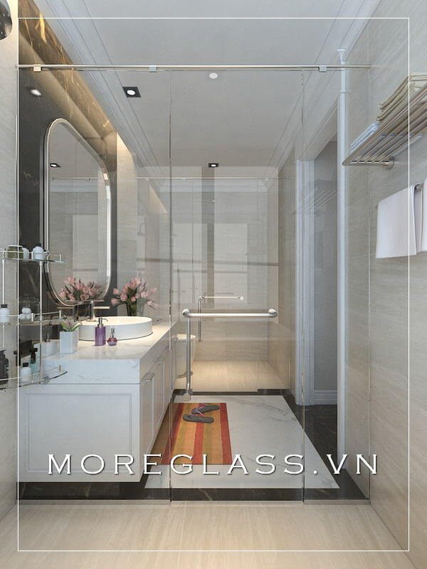 Phòng tắm hiện đại, được trang bị với vách tắm kính cao cấp, có thiết kế tinh tế và thoải mái.