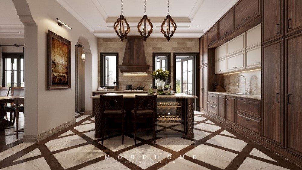 . Nội thất trang trí phòng bếp trái tim của mọi nhà được thiết kế với phong cách địa trung hải, màu sắc hài hòa và chất liệu mộc mạc cùng vẻ đẹp ấn tượng, giúp tạo nên những món ăn thơm ngon nhất để dành cho người thân yêu.