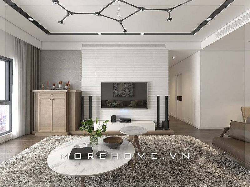 . Kiến trúc sư Morehome áp dụng các hình khối đơn giản và cụ thể để thiết kế một phòng khách chung cư đẹp, giúp gia chủ có trải nghiệm thuận tiện và rõ ràng hơn.