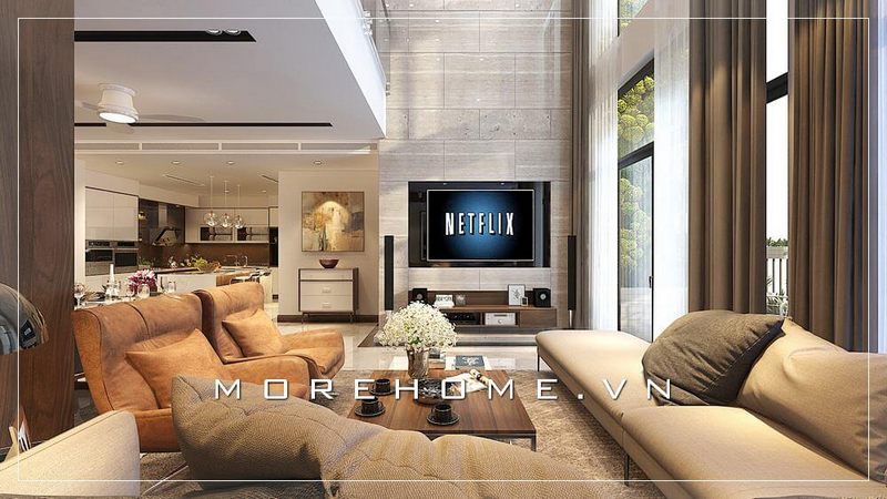 >> Tổng hợp những ý tưởng thiết kế phòng khách liên thông nhà bếp bởi kts nổi tiếng Morehome.
